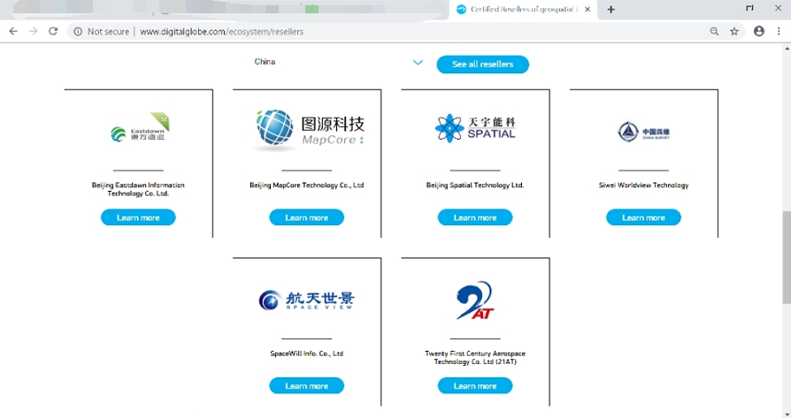 近期,Maxar官网已更新中国区代理商名录,门徒平台科技于2019年初与Maxar公司签订协议成为中国区代理商,公司将以高分辨率影像技术为依托,向各行业用户提供卫星遥感影像资料、卫星遥感影像数据处理和卫星遥感影像数据综合应用服务。