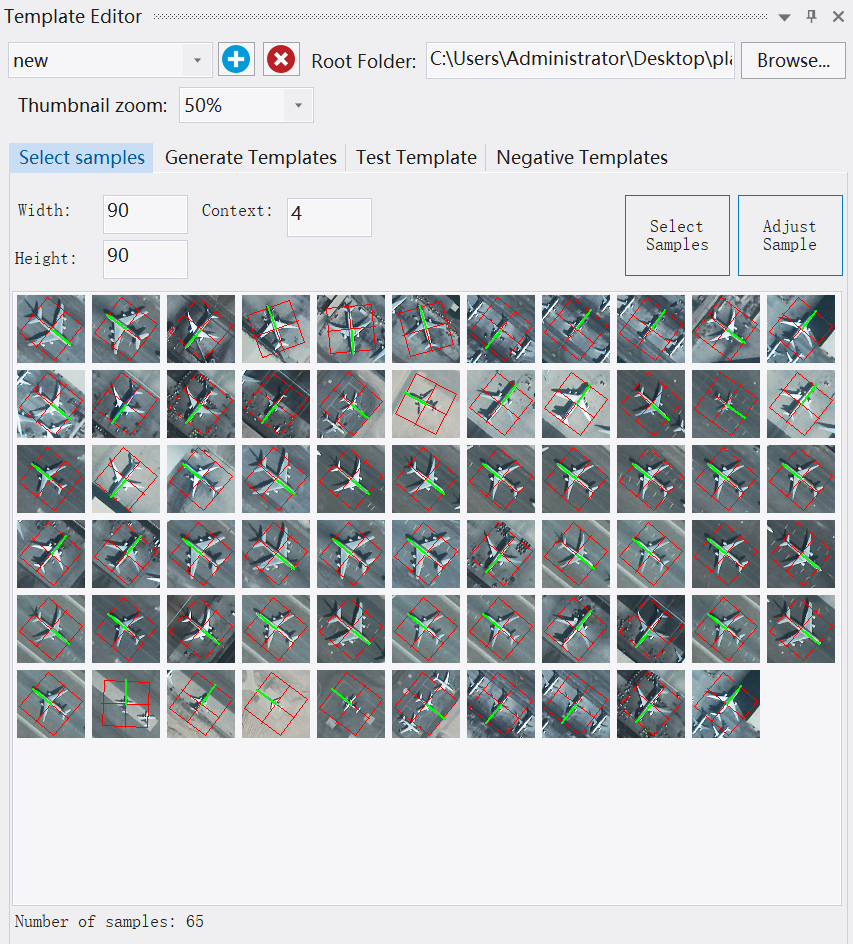 高质量的模板对于使用模板匹配算法实现最佳结果至关重要,为了便于生成这样的模板,eCognition 提供了一个复杂的模板编辑器。 在这个编辑器中,用户可以方便地选择和调整图像中模板的样本表示。 然后应用全自动算法来提取捕获样本共同点的通用模板。还可以在一个子区域上测试生成的模板,让用户快速了解检测到的目标的数量和质量。用户标识为正确的目标将自动添加为样本,从而增加样本数量并允许模板质量的迭代改进。
