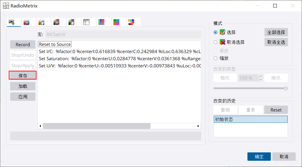 这里插缝介绍一个实用小技巧。宏命令,可以把整个匀色过程录制下来,然后保存,以便同一个项目的另一个工程的使用(直接加载保存的文件,然后点击应用即可)。