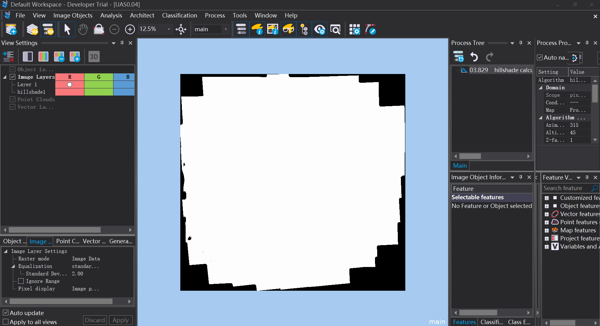 eCognition v10.1版本新增山体阴影算法,山体阴影的效果主要由azimuth(degrees)和altitude(degrees)两个因子控制。本周我们通过控制变量法进行了山体阴影效果的对比,下面让我们一起来看看吧。