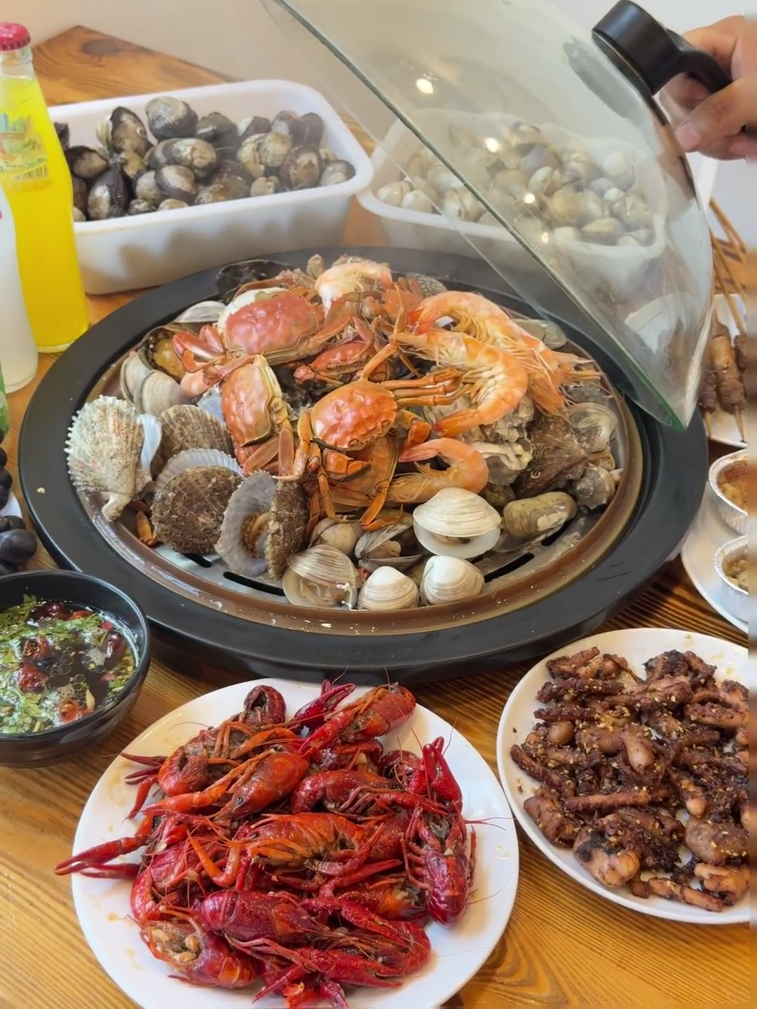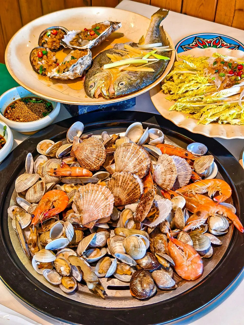 鱼虾蟹贝在盘中堆砌成海的馈赠,